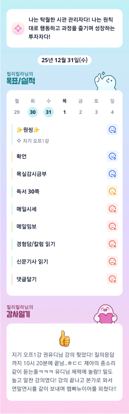 [지투실전 27기 쑤튜님과함께 🌱쑤욱쑤욱 성장하는 2린0ㅣ들 더나은라이프] 12/30-31 목실감