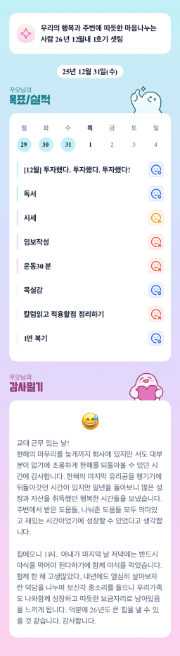 [나무해 월벗] #1341. 25.12.31 감사일기