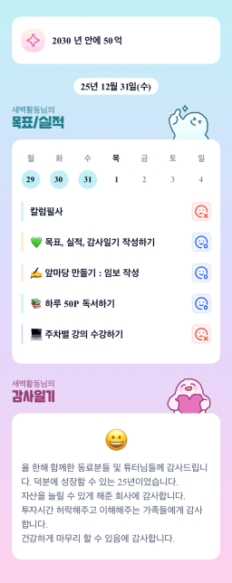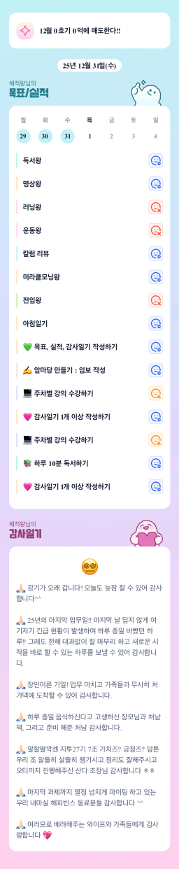 [열중48기 이번달 3시세끼 독서만 불4르조❤️ 열정자매맘] 12.31.목실감