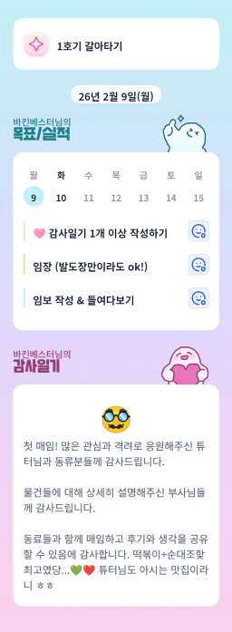 [서투기 30기 5를 곳 췍, 2제 내꺼하조 아찌] 2/9(월)목실감