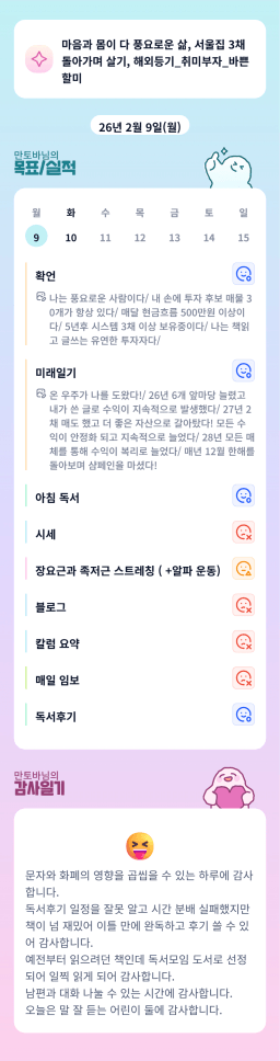 [짱이사랑맘] 2/9 목실감칭반시계부