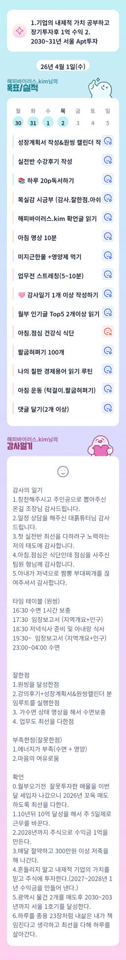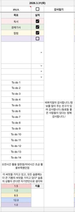 3/31(화) 목표실적감사일기