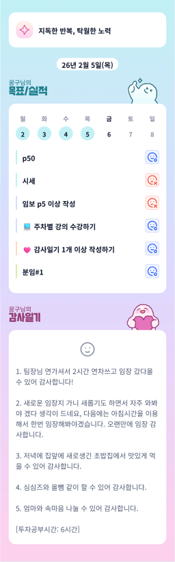 [에이스4반/독서TF 26.1Q 운조] 2/5 목실감