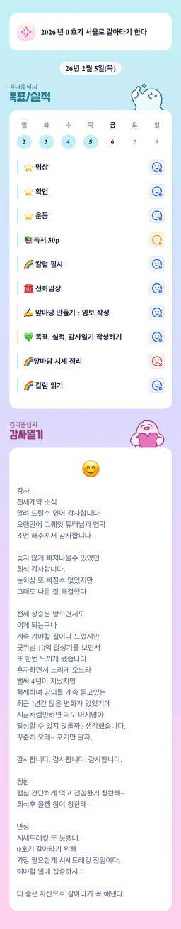 [실전34기🚨삐용삐용 24시간 투자 아라메르 울리조🚨 김다올] 26.2.5.(목) 목실감