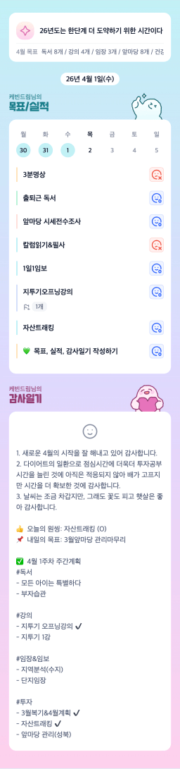 [나무해 월벗] #1432. 26.04.01 목표/실적