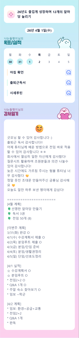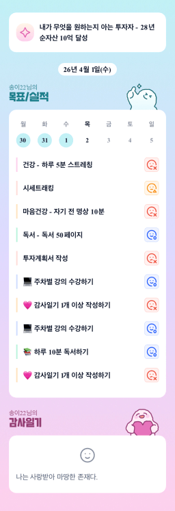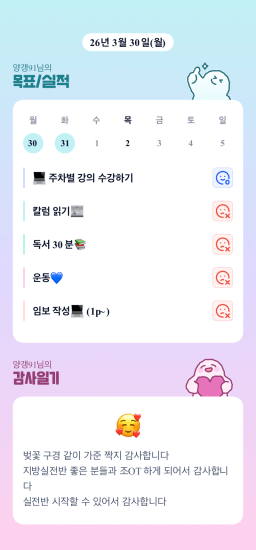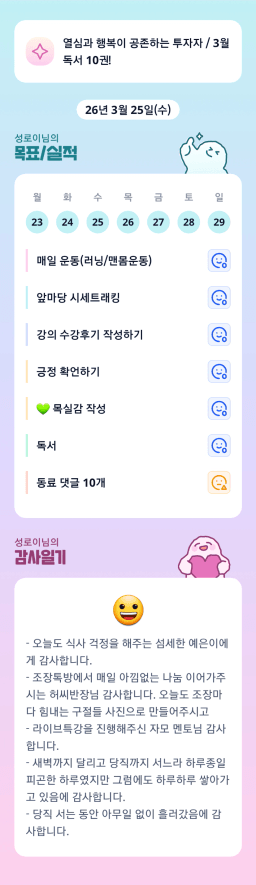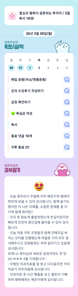 [나는 할 수 있다! 양갱91] 3/30 목실감 누적 90일, 연속 1일 진행중