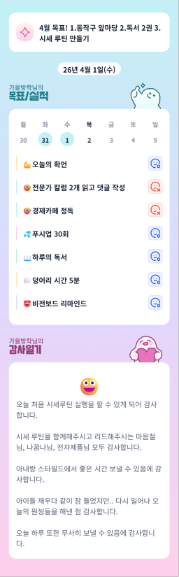 [한꾸꾸] 목실감 누적 256일, 연속 177일 진행중