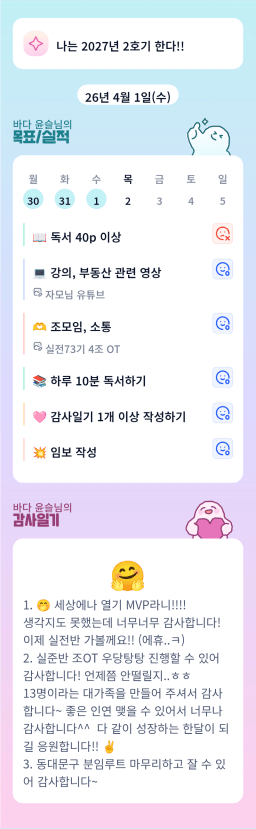 [바다 윤슬] 목실감 누적 138일, 연속 30일 진행중