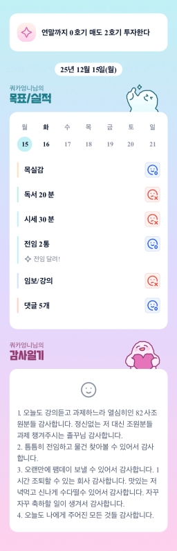 [열기 89조 3삼하게 강남아파트 3채만 하조 무엇을어떻게] 12/14-15 목실감_4,5일차