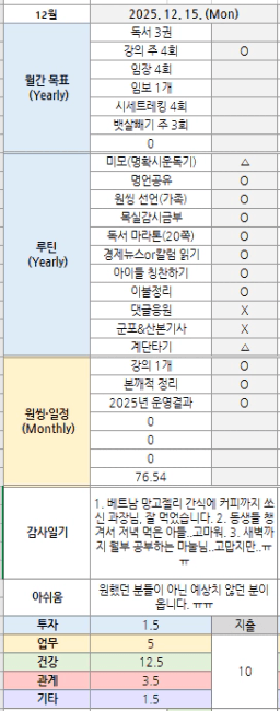 [월부학교 가을학기 가을향ㄱ1보다 진한 향기즈 루시퍼홍] 12/15 목실감, 시간가계부