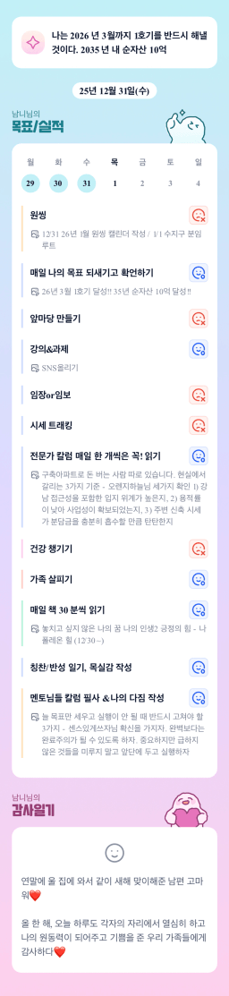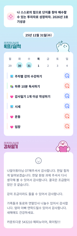 [열중 48기 아파트 4고8아 강남에 24오조 꾸준히해보자] 251231 시금부