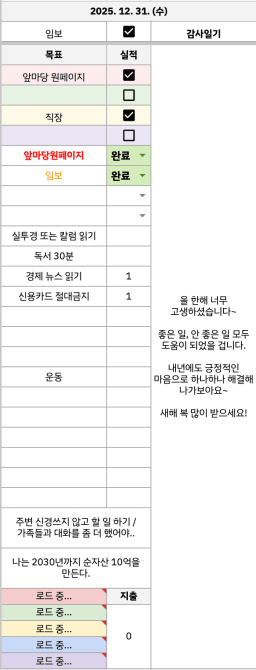 [풍요와 여유] 매일 목실감 2025.12.31.