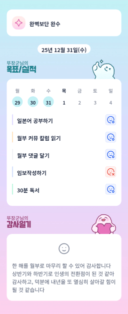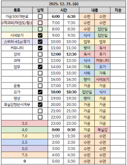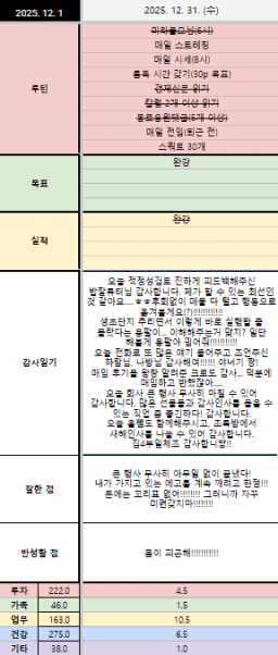 [짱이사랑맘] 12/31 목실감칭반시계부