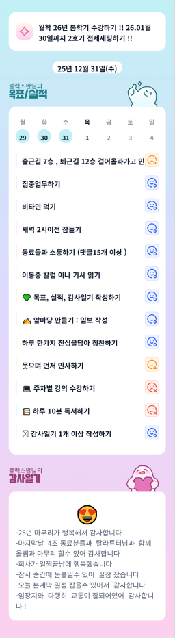 [지투실 27기 거봐 룰루랄라 튜터링 받고 그 집 4길 잘했지_블랙스완 ] 25년의 마지막 목실감