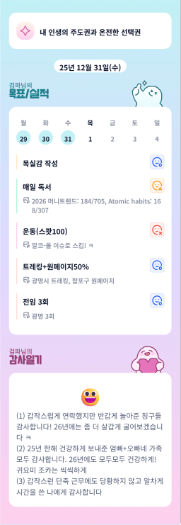 [으으음] 12/27-31, 2025년 마지막 목실감!