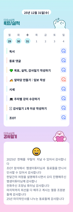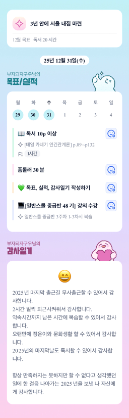 [지투실 27기 2(이)8(빨) 꽉 깨물고 멤생역전 디오a][열중48기 부4님7ㅖ약하시조 디오a]매일목실감 25.12.31