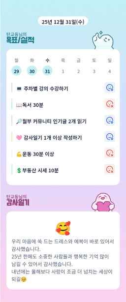 [90일 습관만들기_웅파이프] #4 매일목실감(12.31)