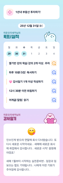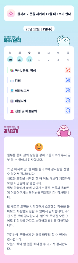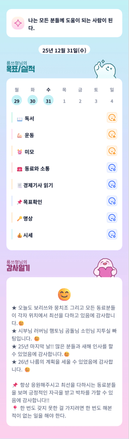 [홍드림] 12/31실적 및 1/1목표, 감사일기