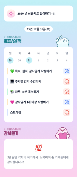 [실전33기 이브잉튜터님과 2븐하게 앞마당 구워보조 또박또박] 목실감 25.12.25 ~ 12.31.