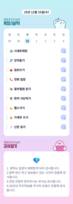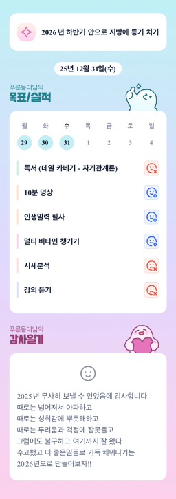 12/31 매일목실감(수고했어 2025, 어서와 2026)