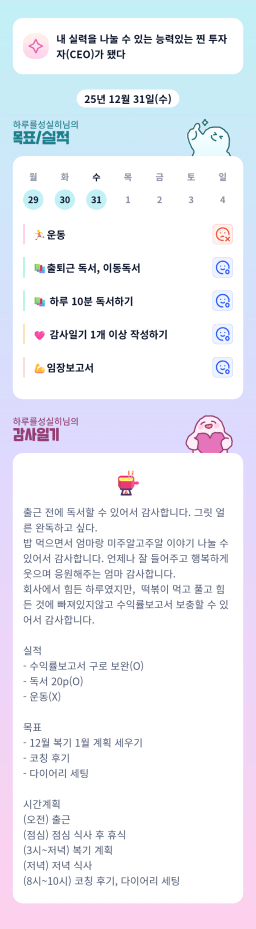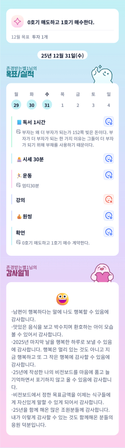 [열기89기 투자원칙대로 chilly(72)하게 안정적으로 투자하조_만보] 25.12.31 목실감