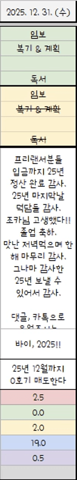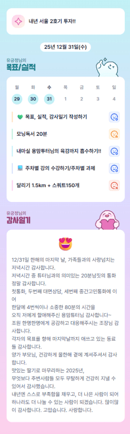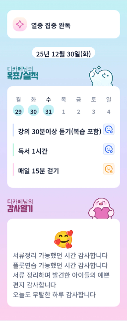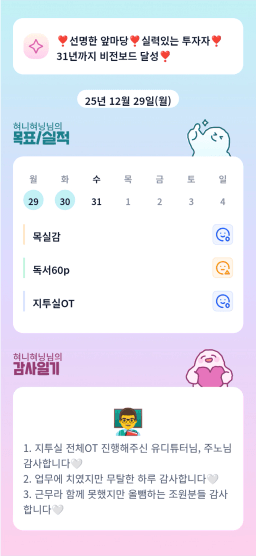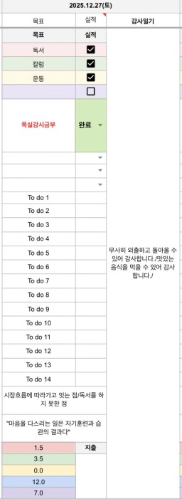 12/27~30(토~화) 목표실적 감사일기