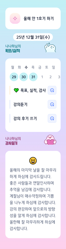 12/31(수) 더 크고 넓은 사람이 된 한 해