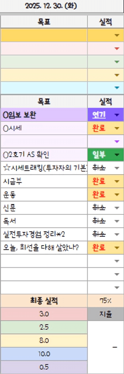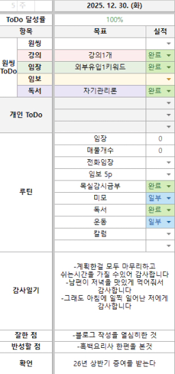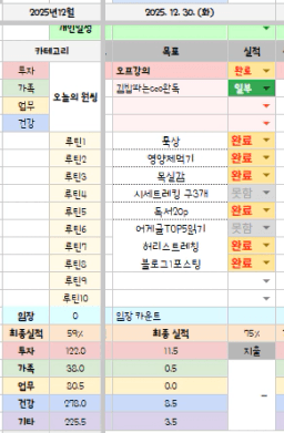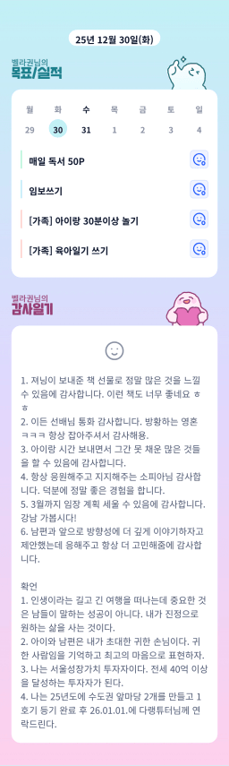 [러버블리v] 25.12.31 목표, 12.30 감사일기 + 칭반