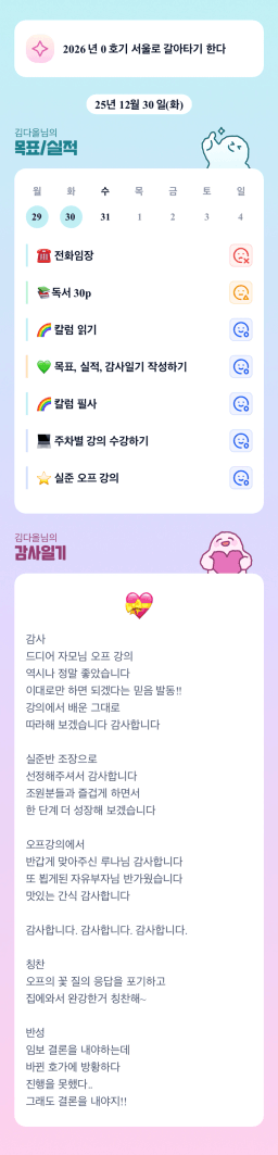 [내마실 엔젤빈쓰 튜터님과 함께하니 4주? 아니조~ 3주만에 내집마련 성공했조 김다올] 25.12.30.(화) 목실감