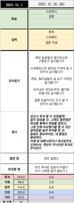 [에이스1반/독서TF 험블] 12월 30일(화) 감사일기