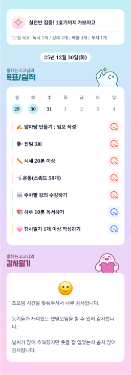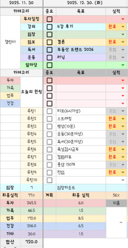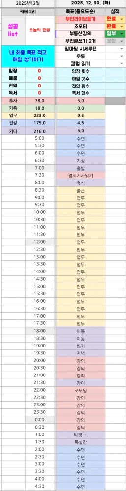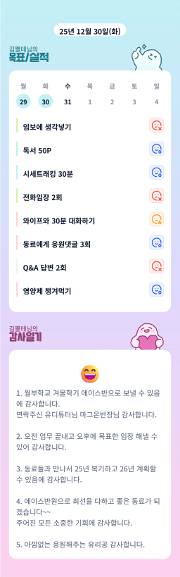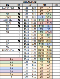 [짱이사랑맘] 12/30 목실감칭반시계부