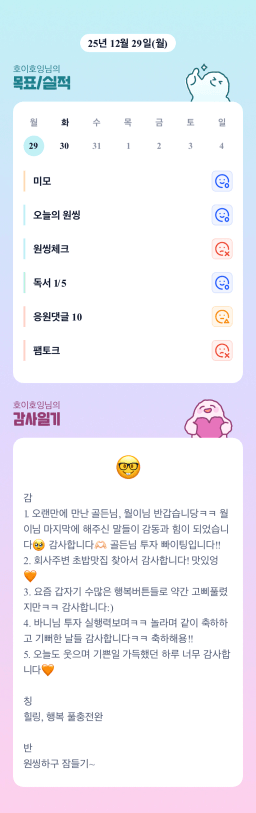 [지구별조이] 매일목실감 251225~251228