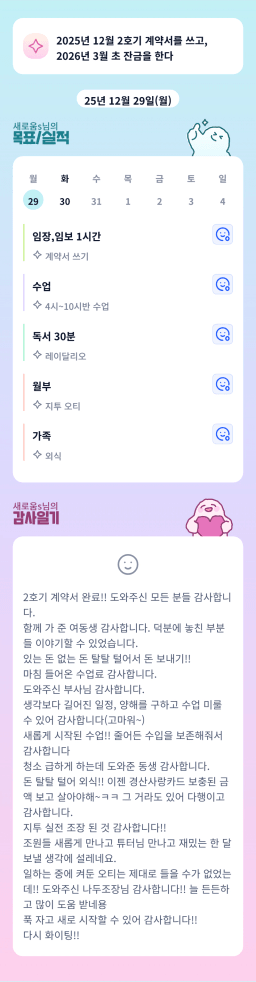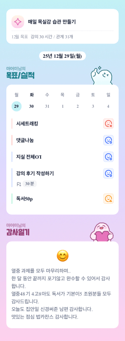 [내마실 엔젤빈쓰 튜터님과 함께하니 4주? 아니조~ 3주만에 내집마련 성공했조 김다올] 25.12.29.(월) 목실감