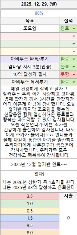 [열기89기 자산4모아3십억달성하조 러브션] 12/29 목실감