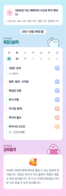 [열기89기 자산4모아3십억달성하조 러브션] 12/29 목실감