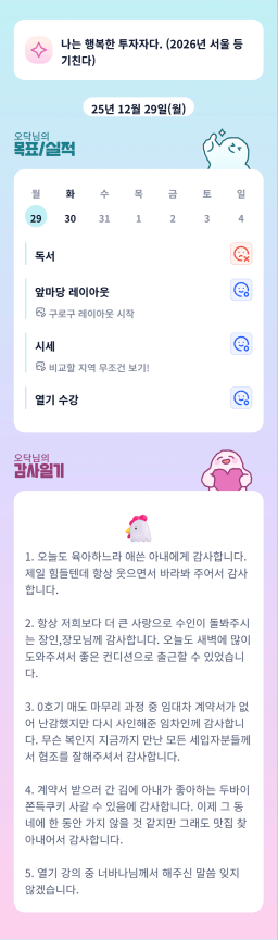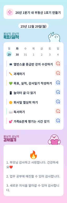 [내마실4기 엔젤빈쓰 튜터님과 함께하니 4주? 아니조~ 3주만에 내집마련 성공했조~👍 채니] 25.12.29 목실감