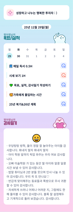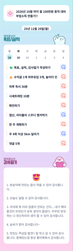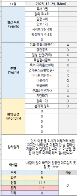 [별찌롱] 12/29 실적, 감사일기, 시간가계부 12/30 목표