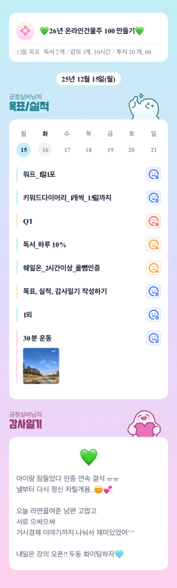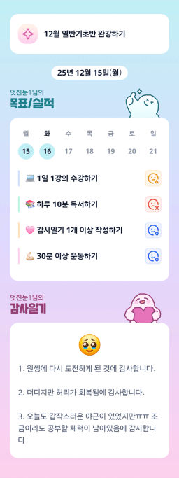 [매일목실감_깜냥] 12월 15일(월) & 16일(화) 목표