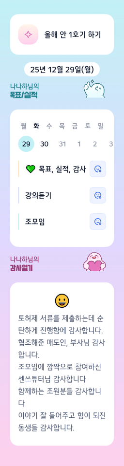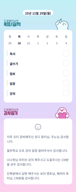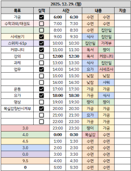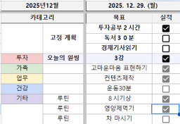 [짱이사랑맘] 12/29 목실감칭반시계부