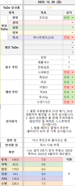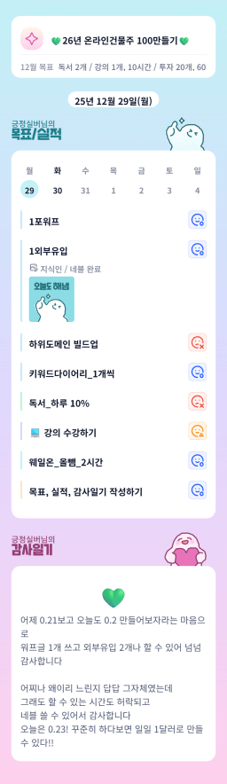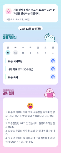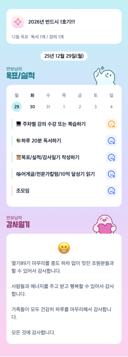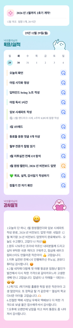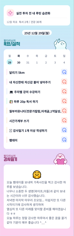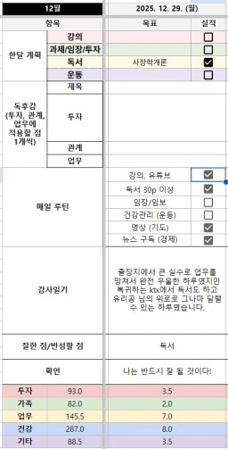 [열기89기 투자원칙대로 chilly(72)하게 안정적으로 투자하조_만보] 25.12.29 목실감