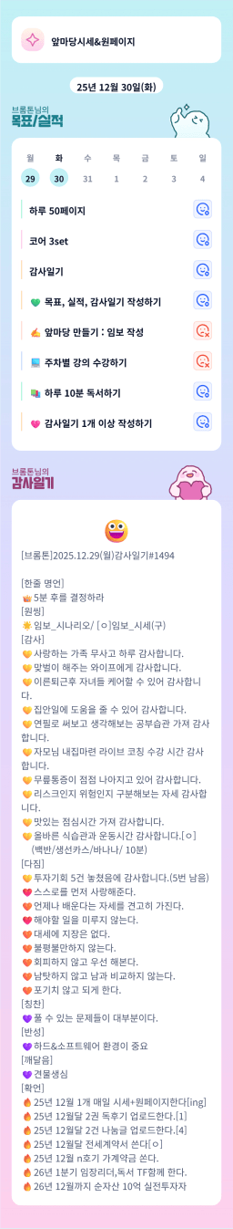 25.12.30 오랜만에(?) 목실감