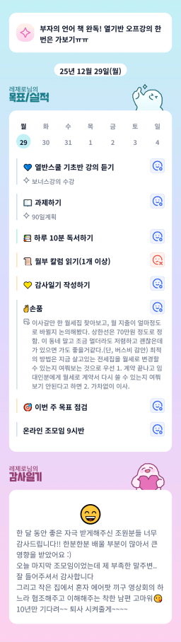 [열중 48기 2번달 독서ㄹ6 하나되 조_별을향해쏴라]#12/29 매일목실감