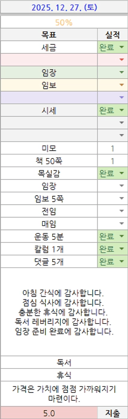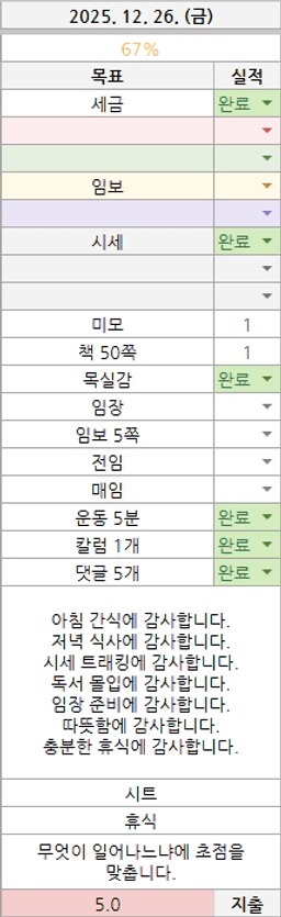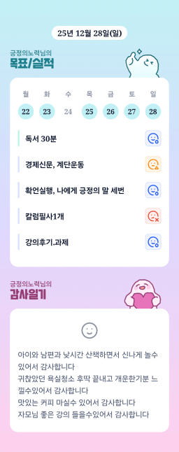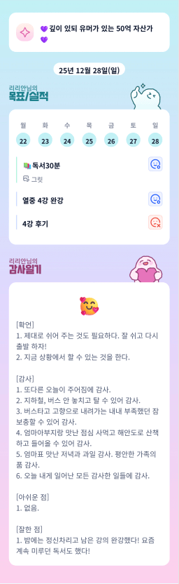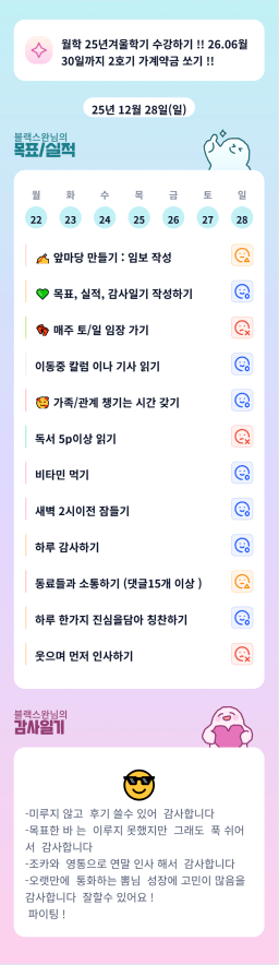[러버블리v] 25.12.29 목표, 12.28 감사일기 + 칭반
