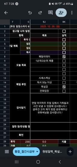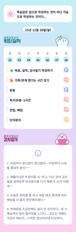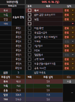 [정의] 2025년 12월 29일 목표, 실적, 감사일기