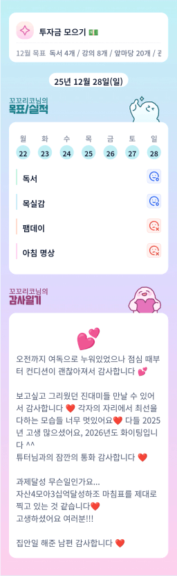 12/28 목실감 [열기89기 자산4모아3십억달성하조_꼬꼬리코]