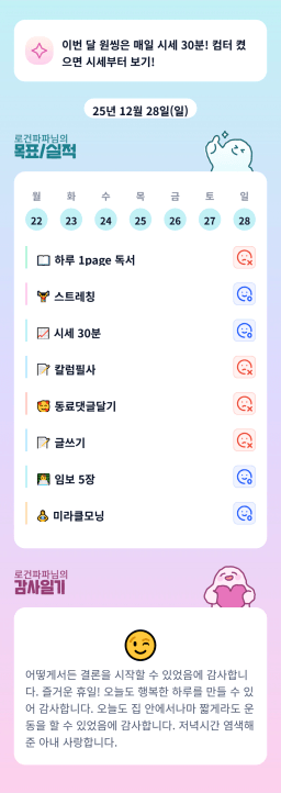 12/28(일) 매일 목실감입니다.