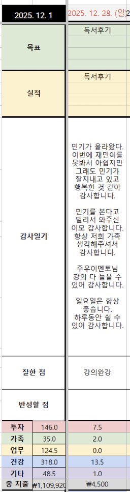 [풍요와 여유] 매일 목실감 2025.12.28.