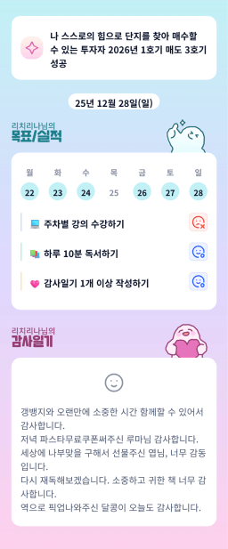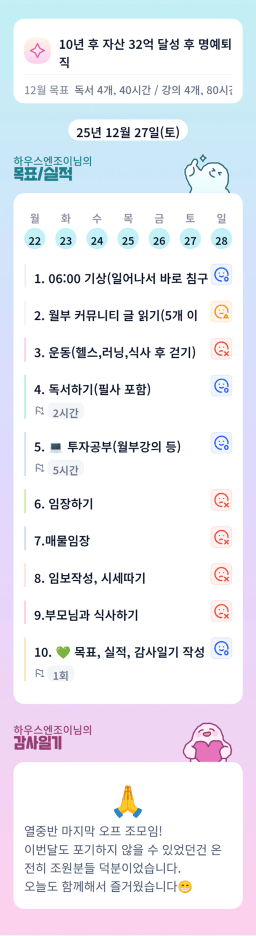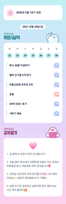 [열중 48기 아파트 4고8아 강남에 24오조 꾸준히해보자] 251228 목실감시금부