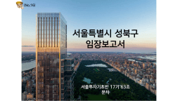 서울 성북구 임장보고서 [서기 17기 5롯이 9월은 서투기만 집중하조 리치샘킴]