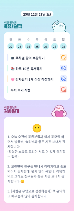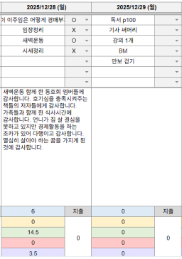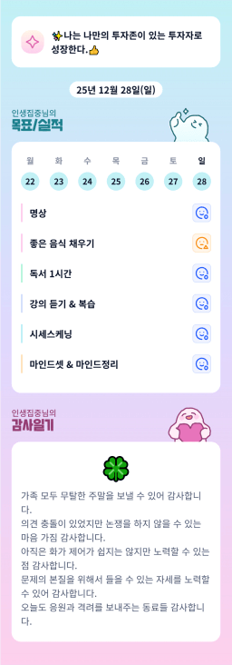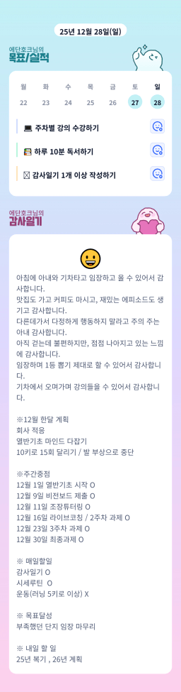 [정의] 2025년 12월 28일 목표, 실적, 감사일기